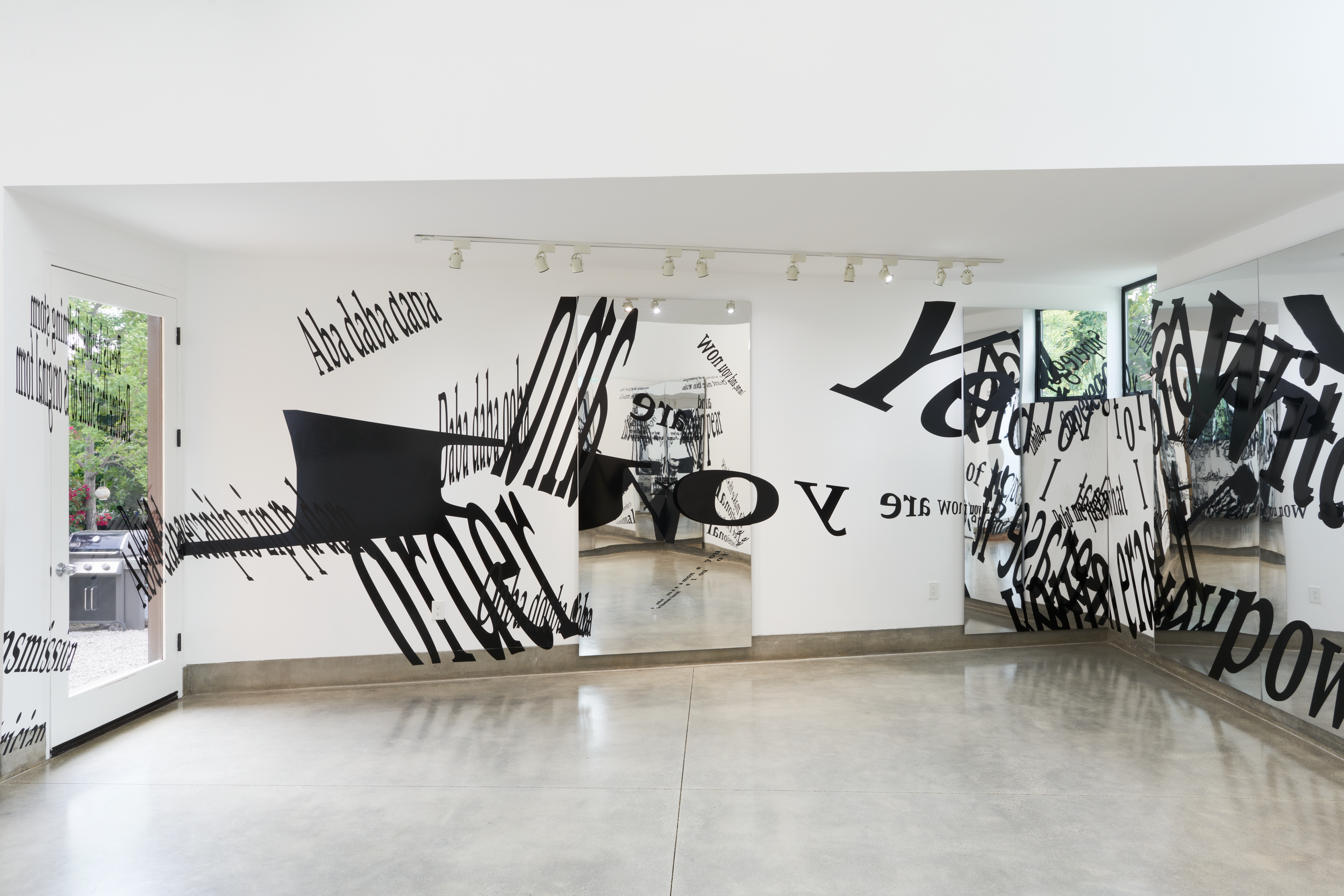 Mirrored Plexiglas, vinyl, sound